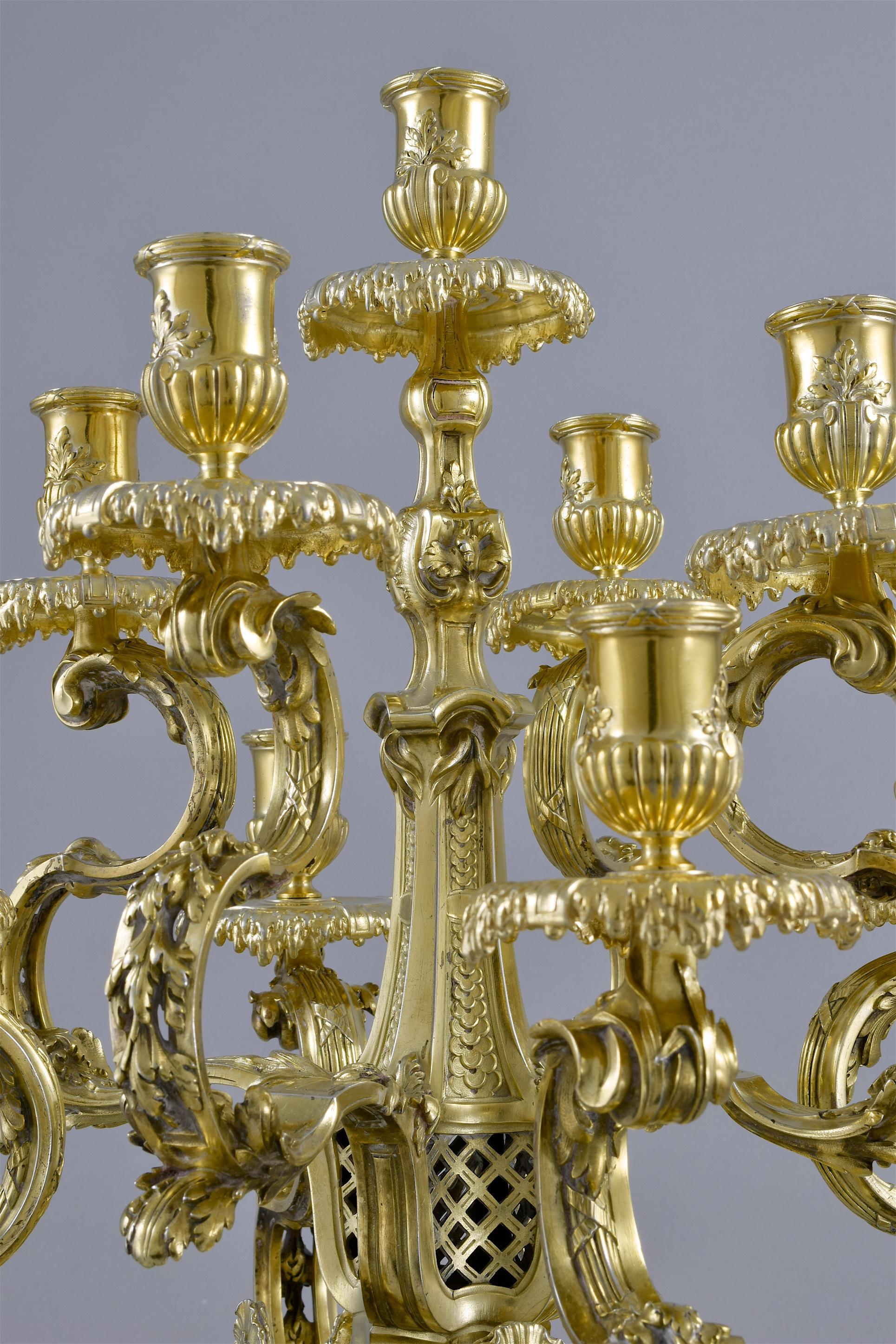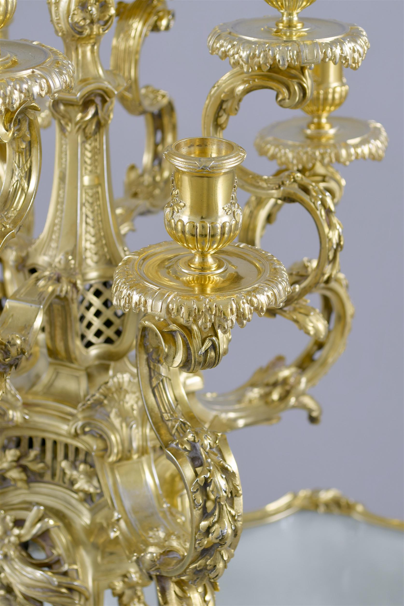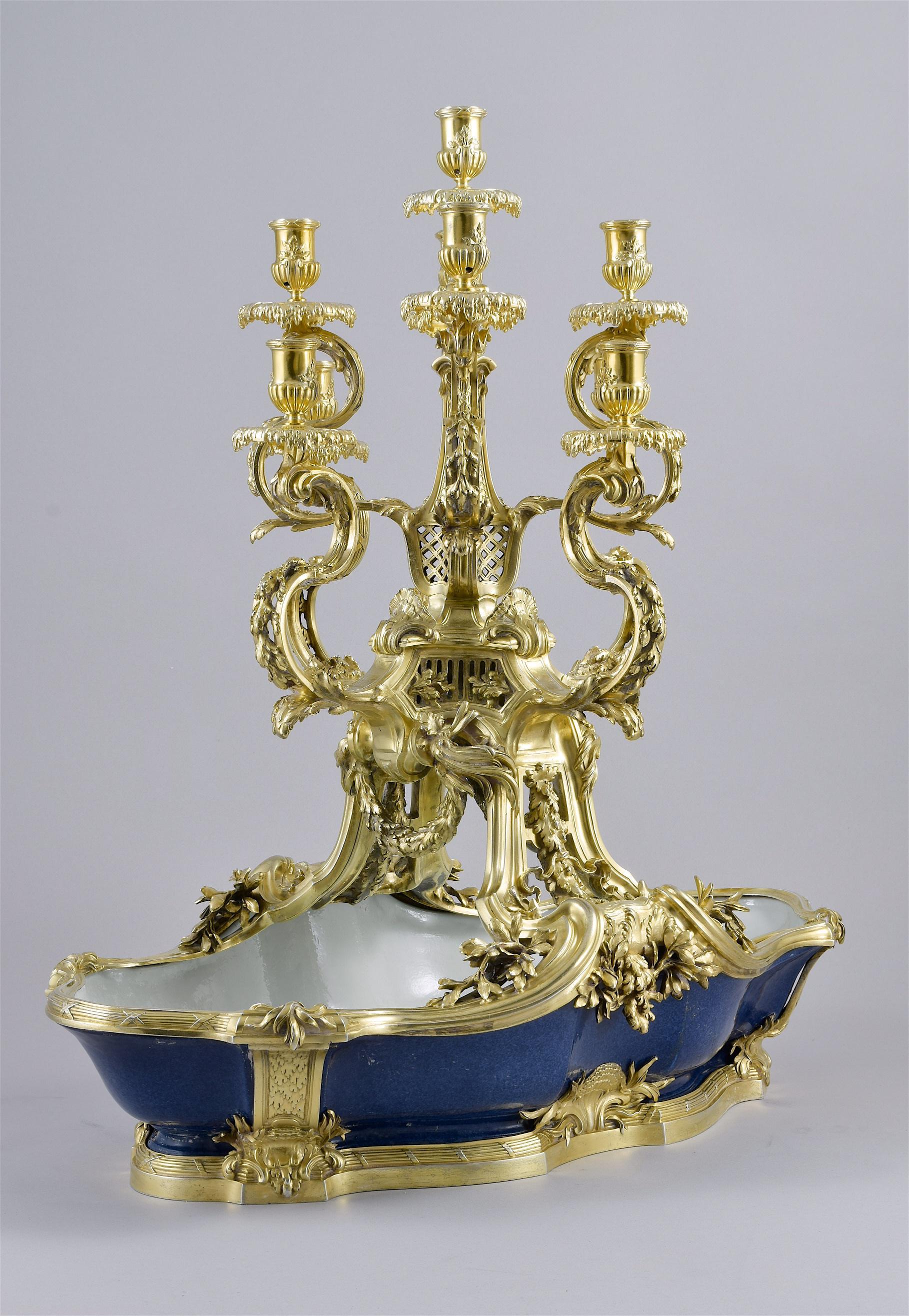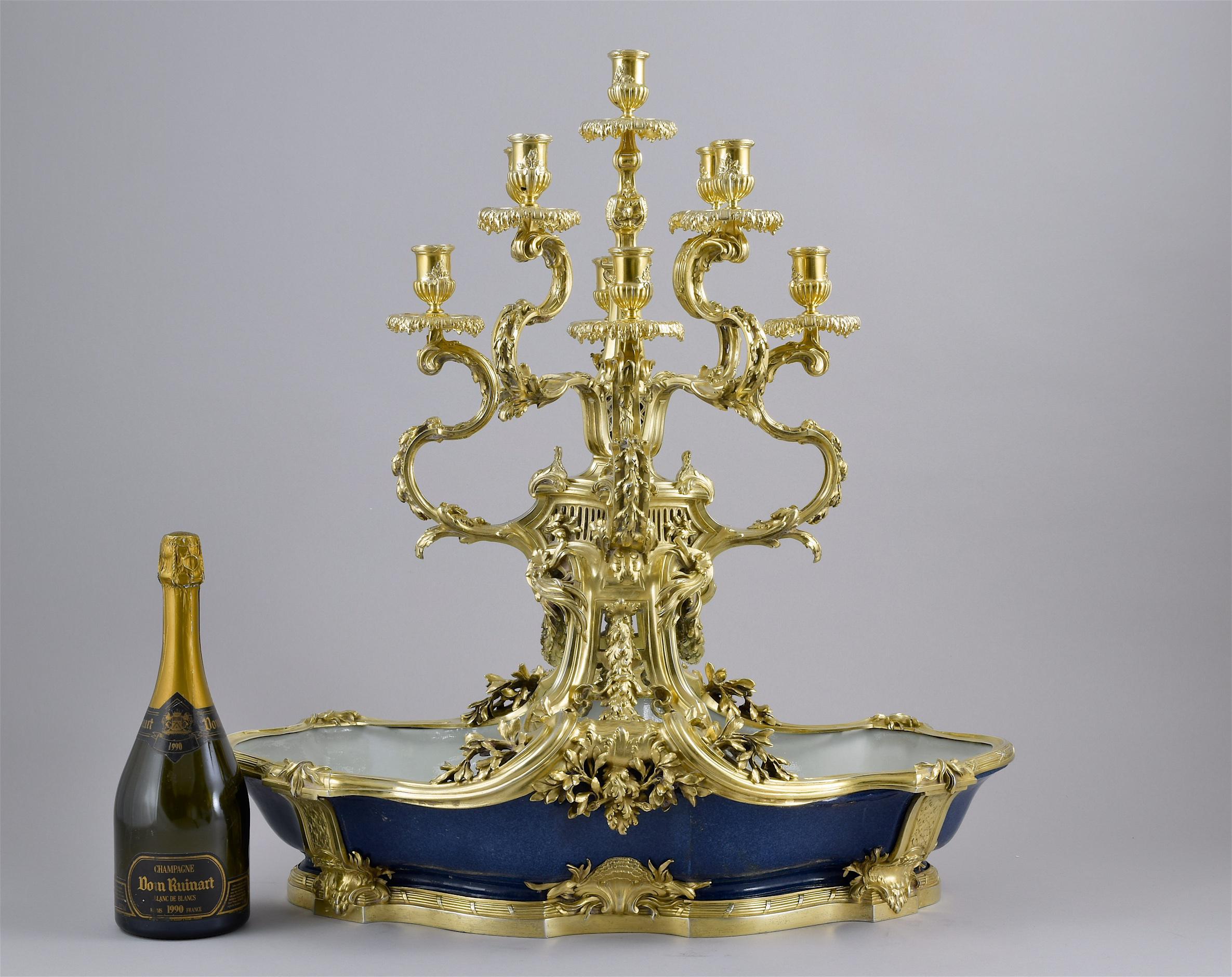 - A magnificent French silver-gilt and blue-porcelain candelabrum centrepiece