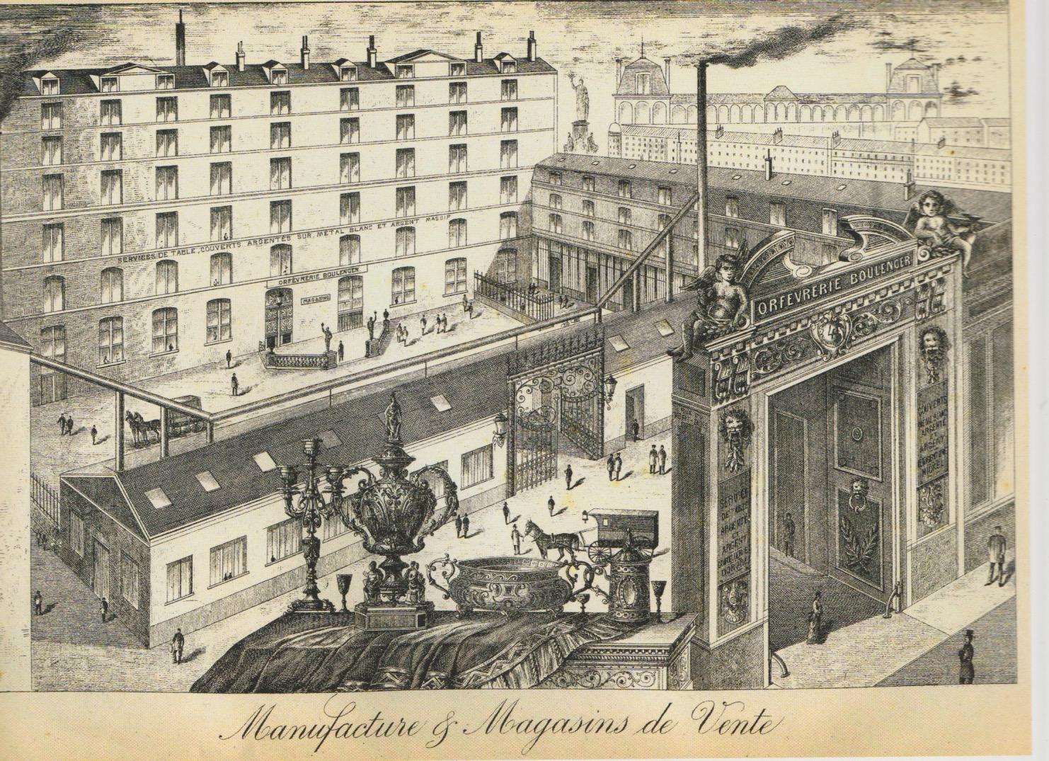 In the 19th century and at the turn of the century, Boulenger was one of the most prominent silversmiths in Paris. The company was founded in 1810 by M. Boulenger-Hautin, in its first decades operating as the Orfevrerie Hautin. When cousin Adolphe Boulenger took over the management in 1864, the name changed to A. Boulenger & Cie. From their branch at 4 rue de Vert-Bois in Paris, the company made a name for itself as an Orfevre of caliber, and in time Boulenger became a regular supplier to the French navy. In 1898 the firm was taken over by Charles Boulenger. It ranked among the finest and most distinguished Parisian silversmiths with their work being awarded several prizes at fairs and exhibitions.