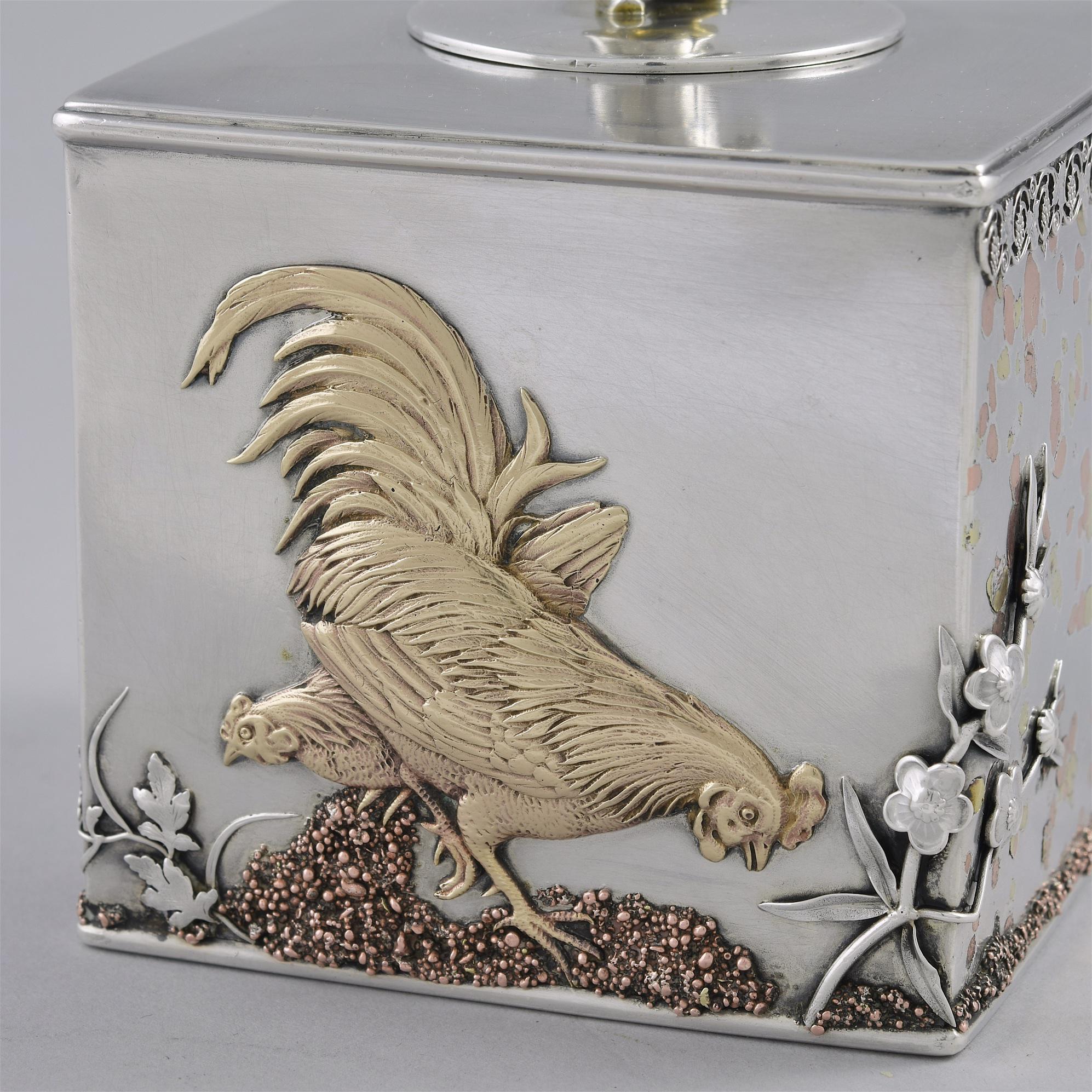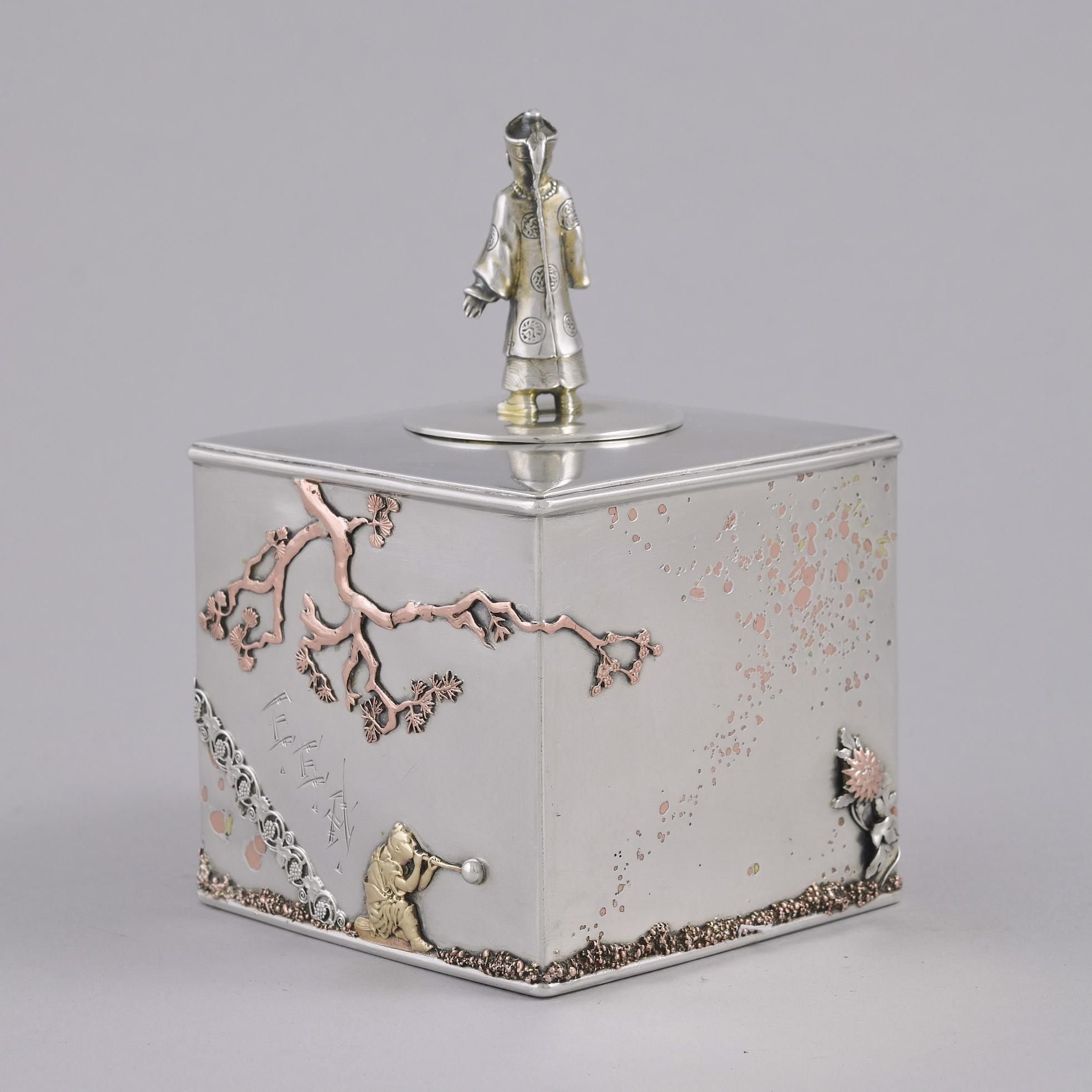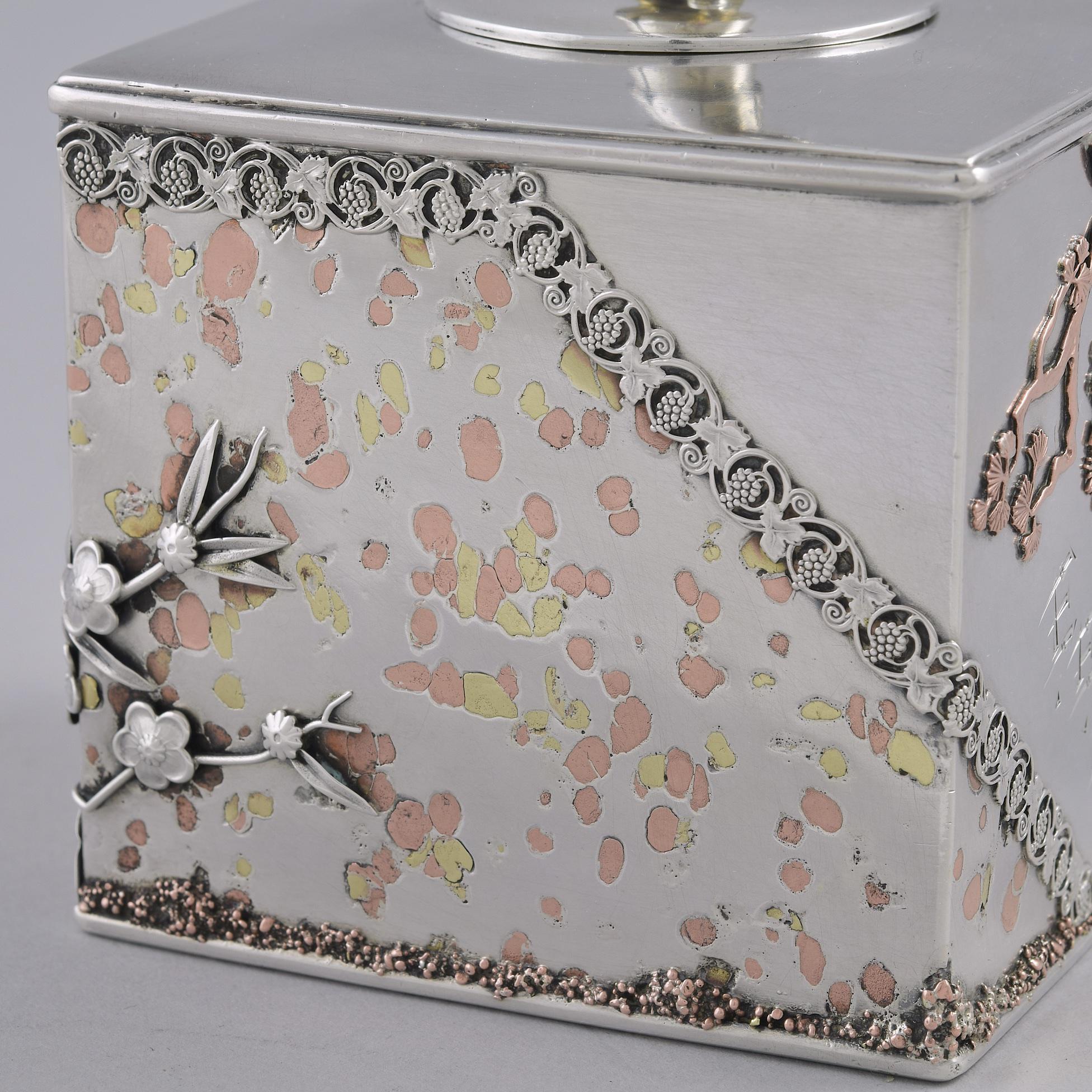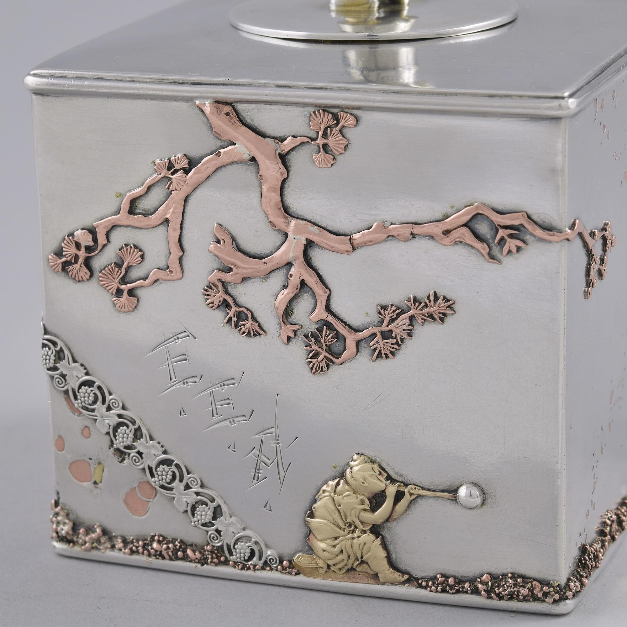 - A rare & unusual aesthetic-movement "curio" mixed-metal Silver Tea Caddy.